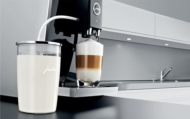 The glass milk container makes an indispensable addition for all coffee lovers who like to spoil their family and guests from time to time with a trendy flat white, latte macchiato or cappuccino. Perfectly harmonised with the typical lines of JURA design, it is easy to store in the refrigerator and connect up to the coffee machine as and when required.  The milk lance is connected at just the right height to allow the milk to be drawn in and frothed with ease. The container holds 0.5 litres and is dishwasher-safe.
