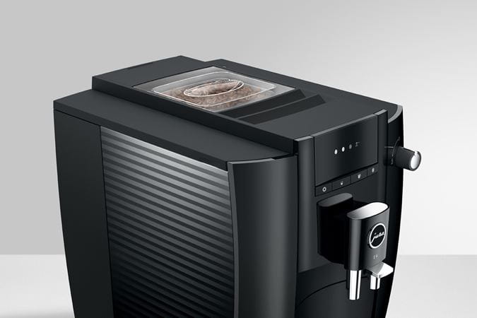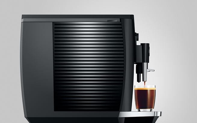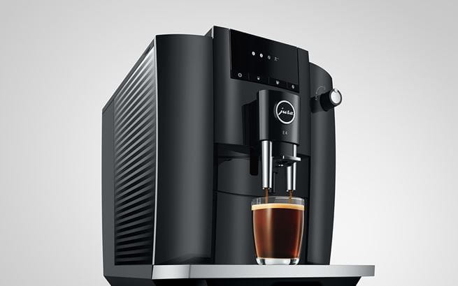 The E4 reflects the characteristic design of JURA coffee machines, with clean lines and surfaces. Crafted with maximum precision, the minimalist lines emphasize the premium quality of the machine. The use of colors follows the same minimalist approach. While the complete body of the machine is in understated Piano Black, chrome-plated details add accents and set off the finished coffee to perfection.