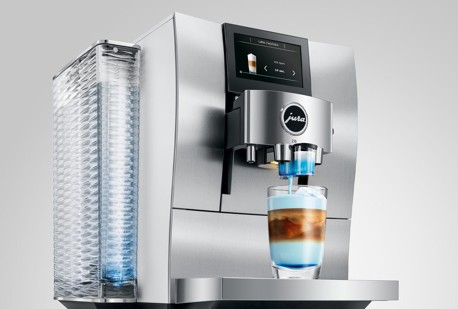 This outstanding premium coffee machine features a double-speed 4.3” touch display and the Blue Crystal Rotary Switch. Thanks to the Specialty Selection menu, it's exceptionally easy and intuitive to use. The technological quantum leap is also reflected in the sculptural design. The convex-concave front panel is visible proof of the attention to detail and absolute manufacturing precision. Its high quality makes the Z10 a statement of excellent taste.