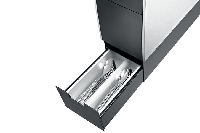 Thanks to the new Professional accessory drawer, the cup warmer perfectly matches the height of the IMPRESSA XJ line. It also gives you another compartment for storing your coffee and espresso spoons.