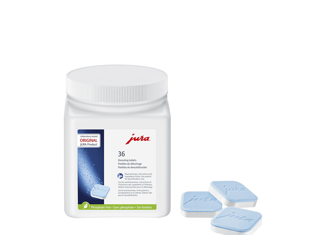 To extend the service life of its coffee machines, JURA has developed a 2-phase descaling tablet which gently removes scale while also protecting your coffee machine.